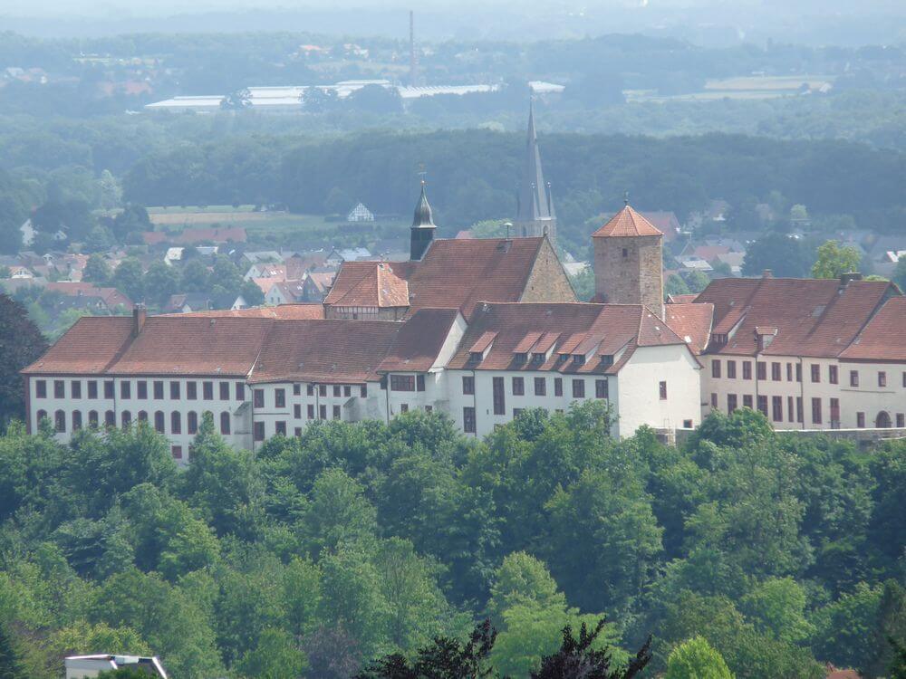 Het hotel ligt op de rand van de heuvels van het Teutoburgerwoud en de eetzaal en de kamers aan de zuidkant hebben een schitterend uitzicht naar het zuiden. Bij helder weer kun je tientallen kilometers ver kijken.