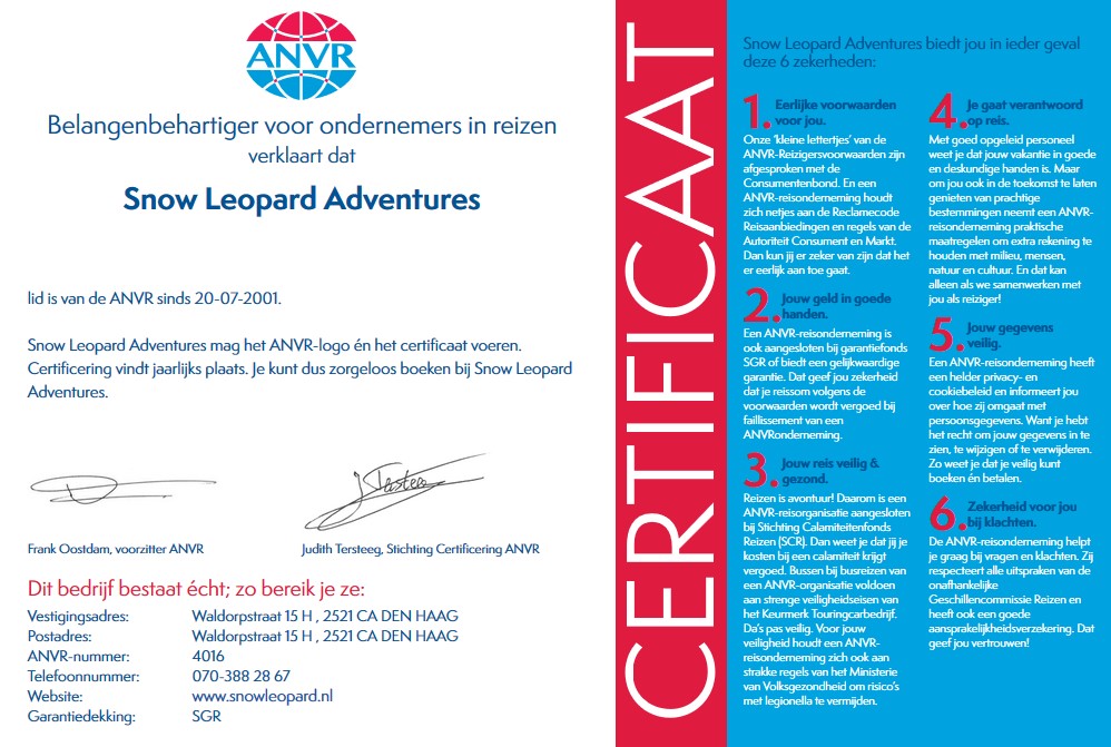 Bij Snowleopard Adventures boek je met zekerheden!